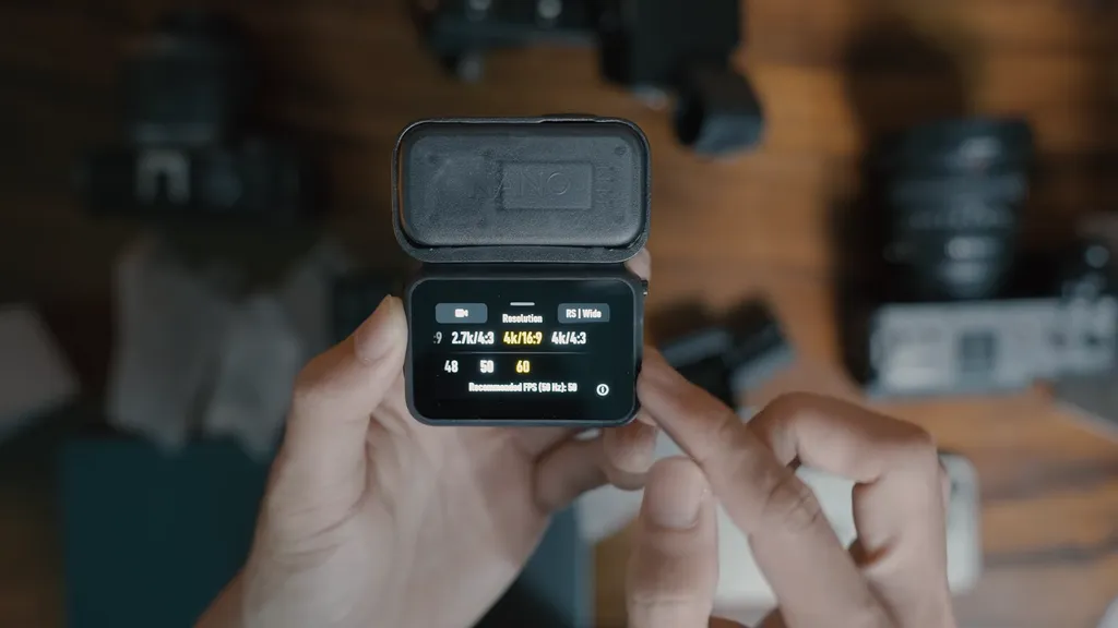 - Thiết kế hai phần thông minh: Camera và màn hình điều khiển là hai phần riêng biệt. Camera rất nhỏ gọn, có bộ nhớ trong (64GB/128GB), có thể quay khoảng 1 giờ 4K. Màn hình điều khiển kiêm pin dự phòng và khe cắm thẻ nhớ, giúp sạc cho camera và chuyển dữ liệu dễ dàng.
