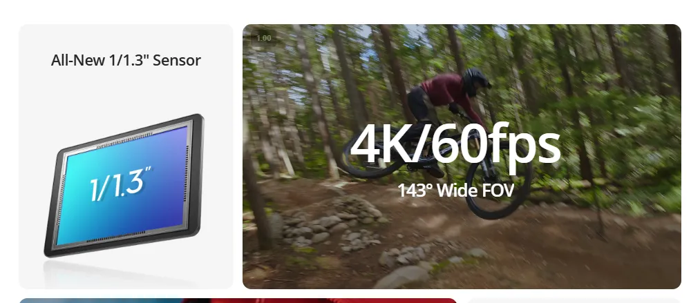 - Thay vì chỉ tập trung vào độ phân giải, DJI đã đầu tư vào cảm biến 1/1.3 inch lớn hơn, một kích thước đáng nể cho một camera hành trình nhỏ gọn. Trong khi nhiều đối thủ vẫn duy trì cảm biến nhỏ hơn, việc nâng cấp này là một lợi thế cạnh tranh đáng kể.